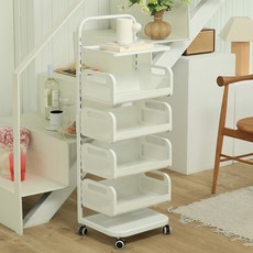 철제 높이조절 다용도 수납 트롤리 5단, 화이트