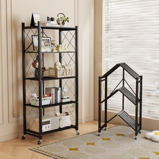 에스와이하우스 원터치 다용도 접이식 간편폴딩 수납 철제 선반, 블랙, 5단