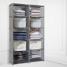 [주식회사 일품유통]다용도 간이 수납 보관함 책장 조립식 8칸 5칸 10칸 화이트 베란다 8단 옷장 탕비실정리함 와이드 10단, 8칸 책장 그레이