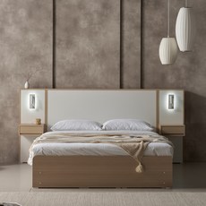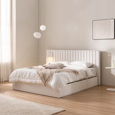에몬스 클레어 빅 수납 침대 킹(K)[포니 2단협탁 포함], 크림아이보리