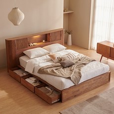 잉글랜더 웨스트 원목 템바보드 LED 수납 침대 프레임 단품 방문설치, 월넛