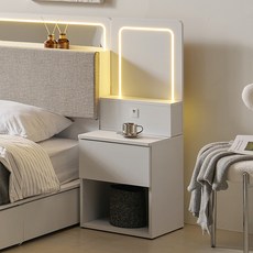 상일리베가구 호텔식 수납형 조명 사이드 협탁 (3color), 화이트
