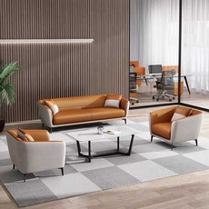 사무용 소파 세트 회의실 응접실 임원실 휴게실 오피스, 1+1+3 조합 (오렌지)