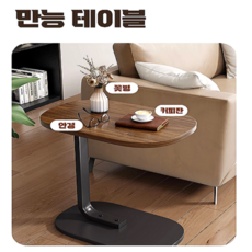간편 높이조절 가능한 쇼파 티 베드 책상 사이드 테이블, 올블랙