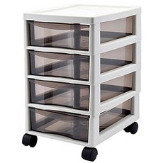 사무실 선반 수납함 바퀴형, 그레이 + 투명, 4단