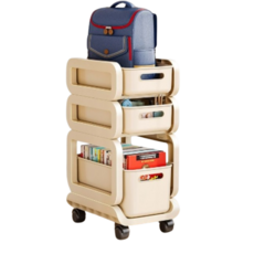 이루다 트롤리 책꽂이 책장 보관함 이동식 북카트, 3단, 베이지